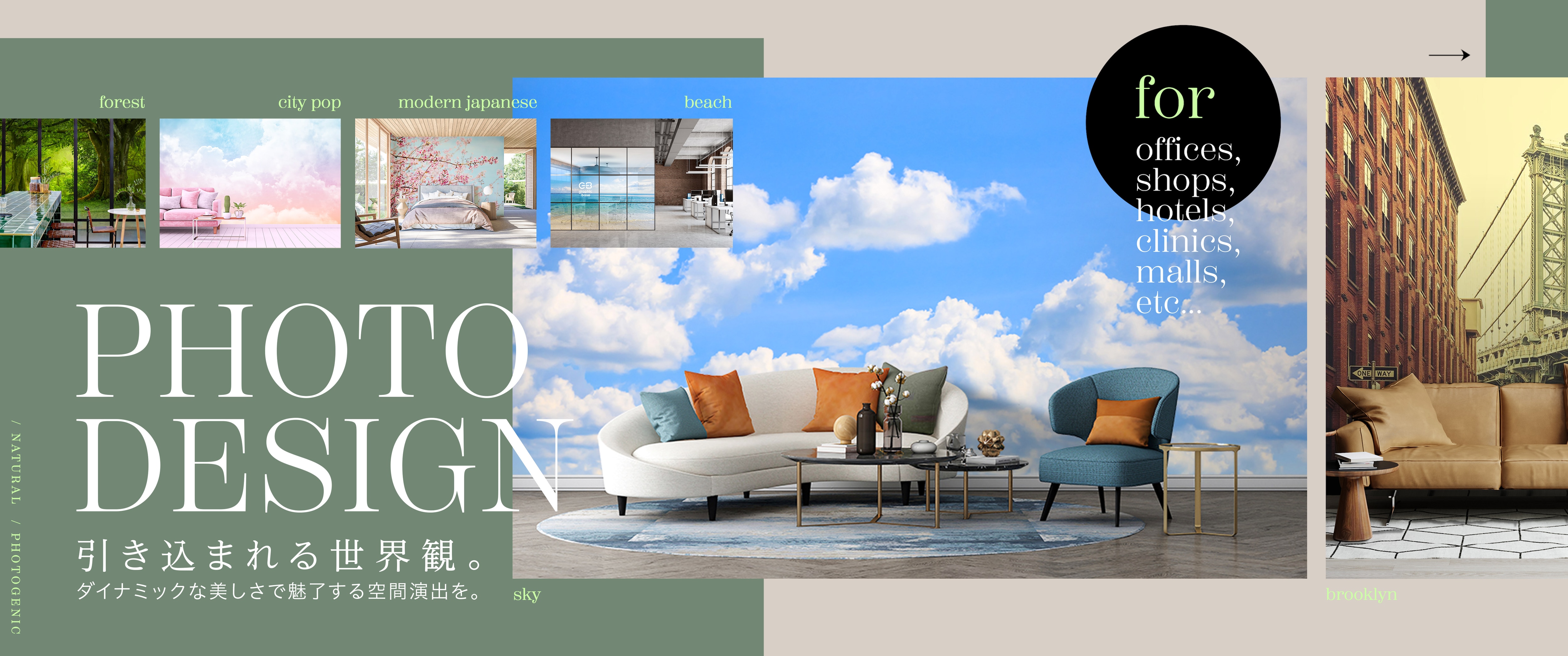 空間コンセプトに合わせたフォトデザインで、引き込まれるような世界観を演出。