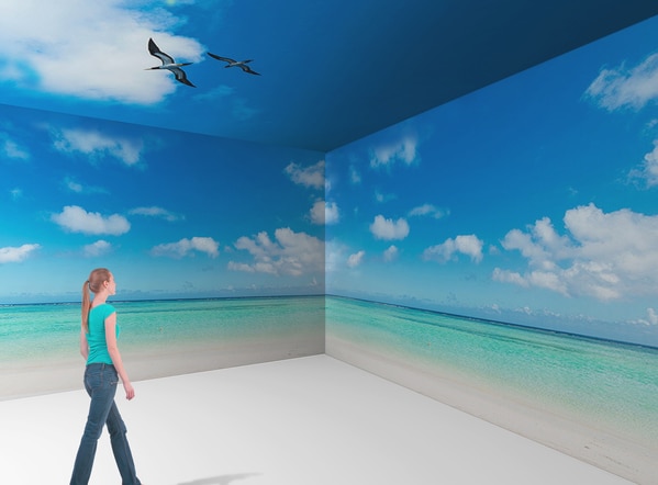 ガラス面や床、天井と組み合わせた「まるごとラッピング」もおすすめです。